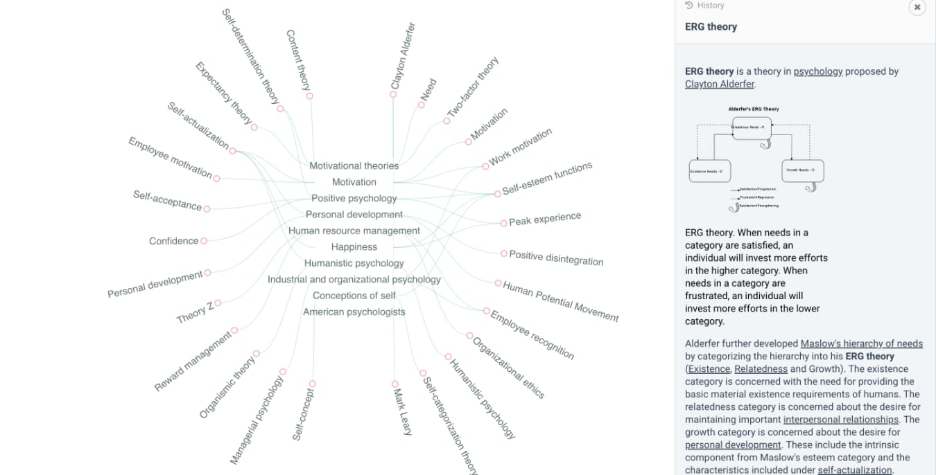 - Researches Wikipedia and presents topics them via a concept map