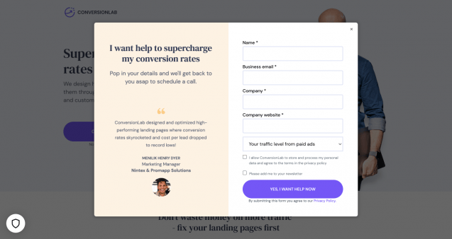And when one of their landing page visitors takes them up on the offer, ConversionLab are going to gather all of their contact details.