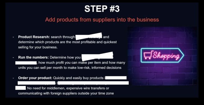 - Secret Supplier Clinic: A pre-recorded in-depth clinic, showing you exactly how the Wholesale pros negotiate.