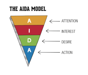 What the enhanced AIDA model directly above is illustrating is simply what you should be doing at each of the sales funnel stages to keep your prospect moving down into the next stage of the funnel.