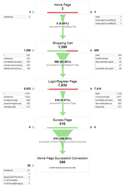 Once you're done and you have some data coming through, this is how your funnel will look in Google Analytics: